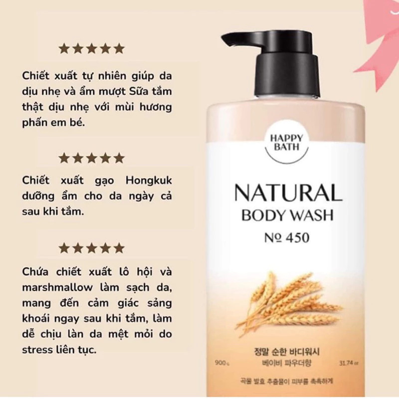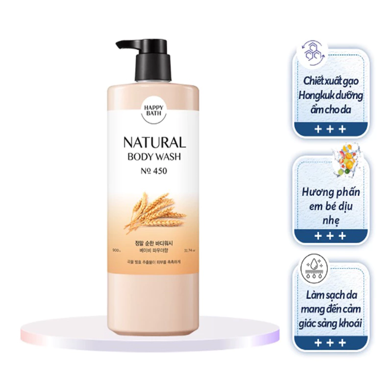 Happy Bath Natural Body Wash No.450 is extracted entirely from nature, containing small, fine essence particles that gently remove dead cells while maintaining skin moisture, while dispelling fatigue with a gentle, fresh natural scent.