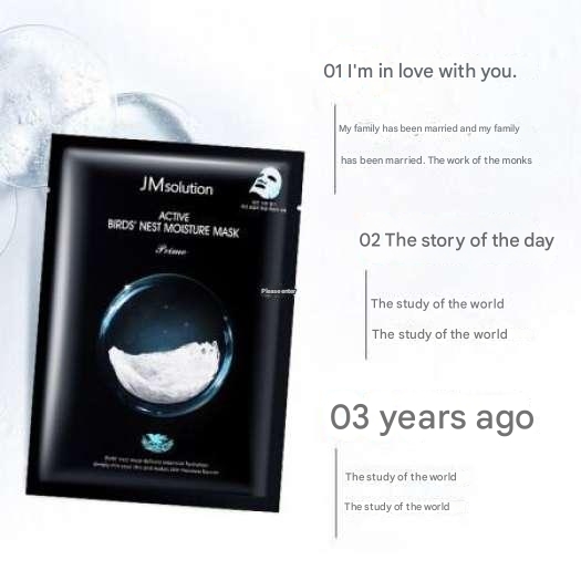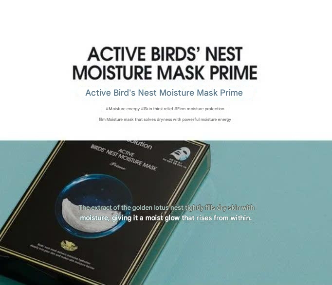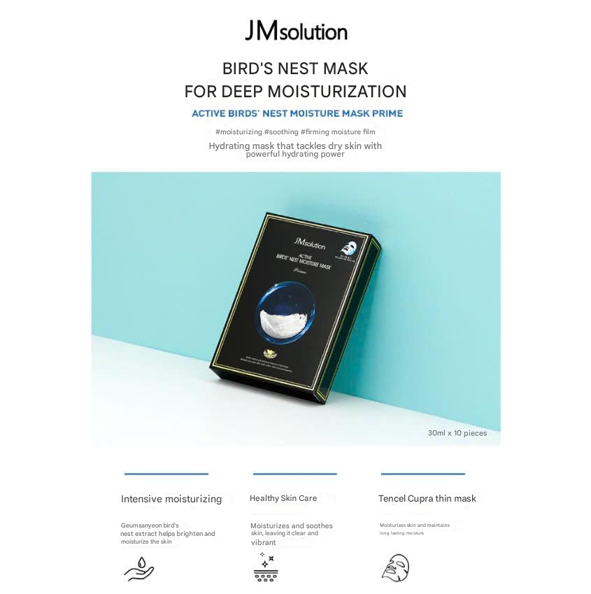 Active Birds' Nest Moisture Mask Prime is an intensive moisturizing mask from the JMsolution brand. The mask is extracted from bird's nests to provide firmness to the skin and enhance moisture to help maintain healthy and vibrant skin.